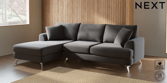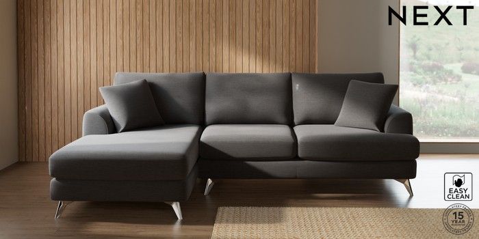 7.2.10 Parker Medium Sofa Chaise - Left Hand Fine Chenille Easy Clean Dark Smoke Grey High Metal - Chrome | Made Click here to use our website with more accessibility support, for example screen readers