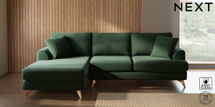 7.2.10 Parker Medium Sofa Chaise - Left Hand Fine Chenille Easy Clean Mid Khaki Green High Metal - Brass | Made Click here to use our website with more accessibility support, for example screen readers