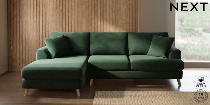 7.2.10 Parker Medium Sofa Chaise - Left Hand Fine Chenille Easy Clean Mid Khaki Green Low Retro Tapered - Light | Made Click here to use our website with more accessibility support, for example screen readers