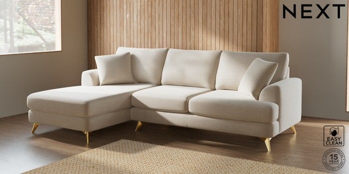 7.2.10 Parker Medium Sofa Chaise - Left Hand Fine Chenille Easy Clean Oyster High Metal - Brass | Made Click here to use our website with more accessibility support, for example screen readers