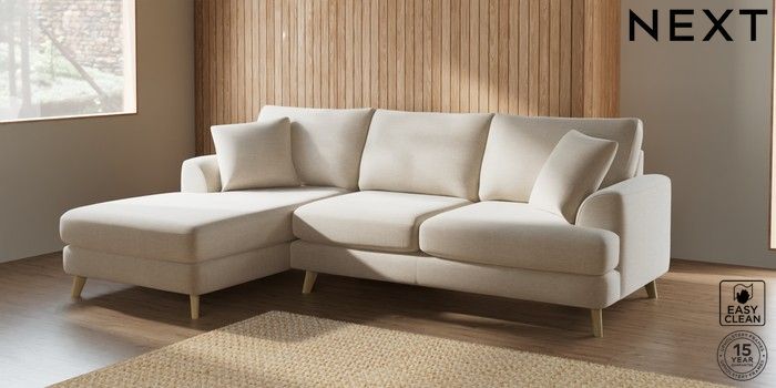 7.2.10 Parker Medium Sofa Chaise - Left Hand Fine Chenille Easy Clean Oyster Low Retro Tapered - Light | Made Click here to use our website with more accessibility support, for example screen readers