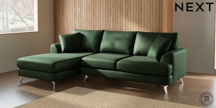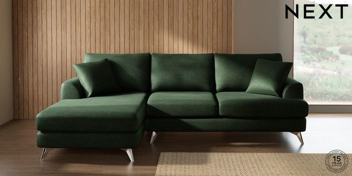 7.2.10 Parker Medium Sofa Chaise - Left Hand Luxe Chenille Dark Green High Metal - Chrome | Made Click here to use our website with more accessibility support, for example screen readers