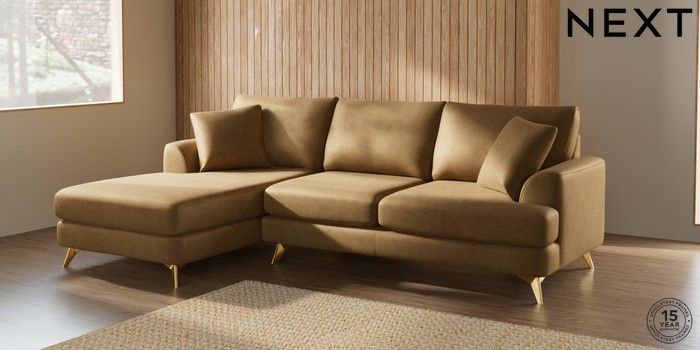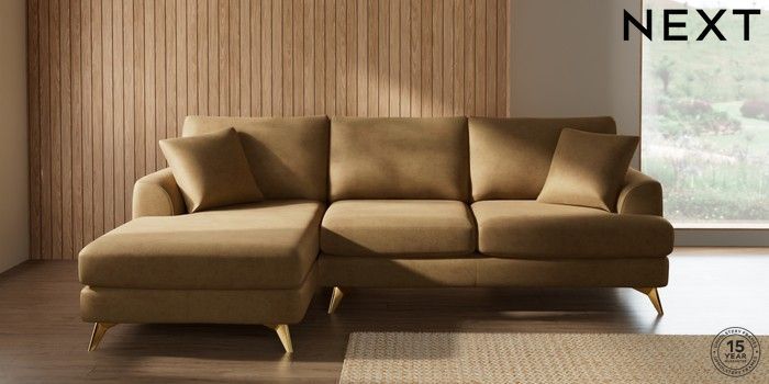 7.2.10 Parker Medium Sofa Chaise - Left Hand Luxe Chenille Honey Yellow High Metal - Brass | Made Click here to use our website with more accessibility support, for example screen readers