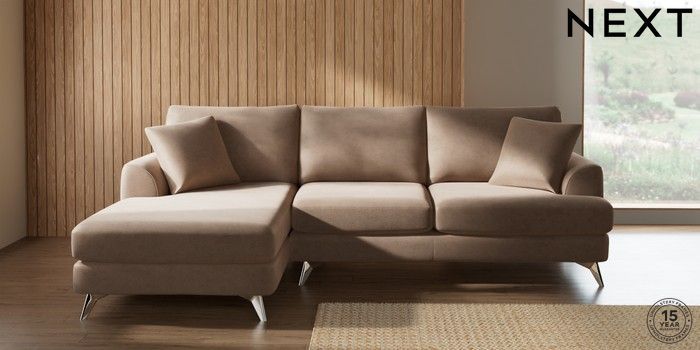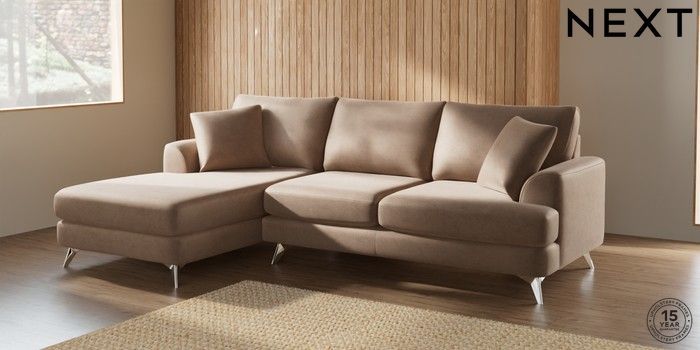 7.2.10 Parker Medium Sofa Chaise - Left Hand Luxe Chenille Mid Natural High Metal - Chrome | Made Click here to use our website with more accessibility support, for example screen readers