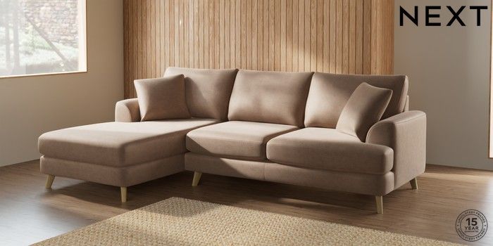 7.2.10 Parker Medium Sofa Chaise - Left Hand Luxe Chenille Mid Natural Low Retro Tapered - Light | Made Click here to use our website with more accessibility support, for example screen readers