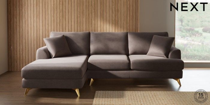 7.2.10 Parker Medium Sofa Chaise - Left Hand Luxe Chenille Mink Brown High Metal - Brass | Made Click here to use our website with more accessibility support, for example screen readers