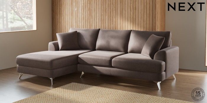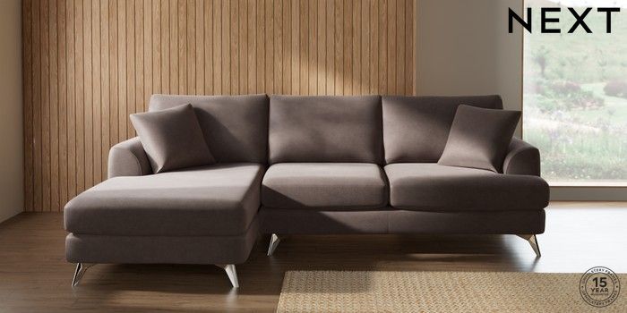 7.2.10 Parker Medium Sofa Chaise - Left Hand Luxe Chenille Mink Brown High Metal - Chrome | Made Click here to use our website with more accessibility support, for example screen readers