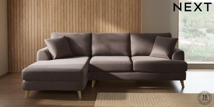 7.2.10 Parker Medium Sofa Chaise - Left Hand Luxe Chenille Mink Brown Low Retro Tapered - Light | Made Click here to use our website with more accessibility support, for example screen readers