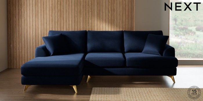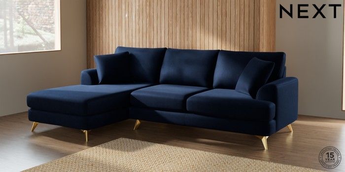 7.2.10 Parker Medium Sofa Chaise - Left Hand Luxe Chenille Navy Blue High Metal - Brass | Made Click here to use our website with more accessibility support, for example screen readers
