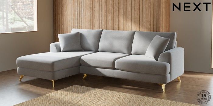7.2.10 Parker Medium Sofa Chaise - Left Hand Natural Mix Light Grey High Metal - Brass | Made Click here to use our website with more accessibility support, for example screen readers