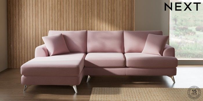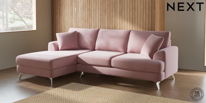 7.2.10 Parker Medium Sofa Chaise - Left Hand Natural Mix Light Rose Pink High Metal - Chrome | Made Click here to use our website with more accessibility support, for example screen readers