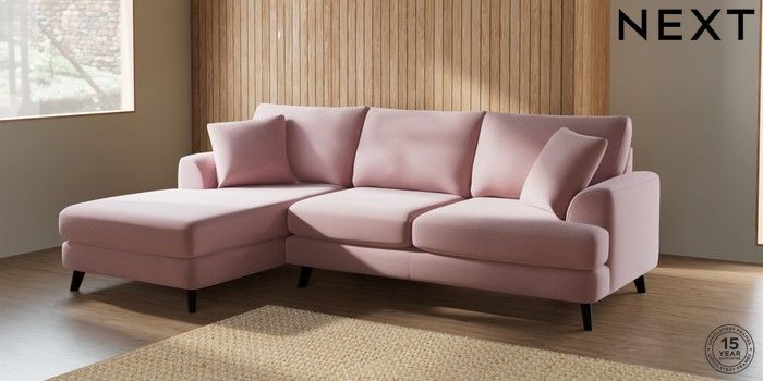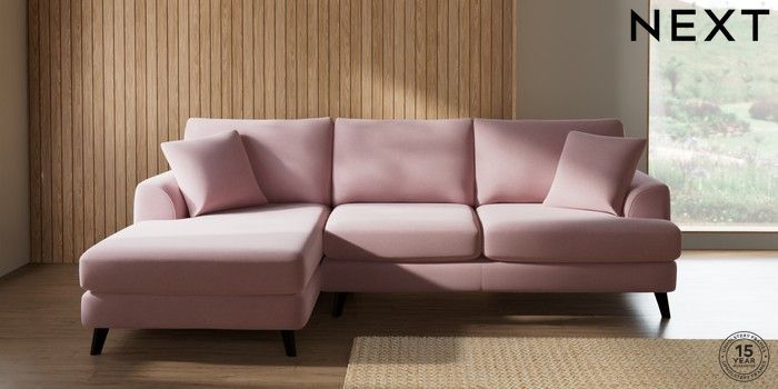 7.2.10 Parker Medium Sofa Chaise - Left Hand Natural Mix Light Rose Pink Low Retro Tapered - Dark | Made Click here to use our website with more accessibility support, for example screen readers
