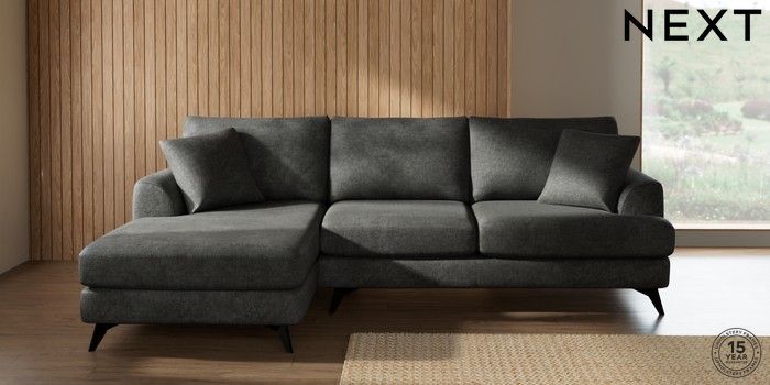 7.2.10 Parker Medium Sofa Chaise - Left Hand Plush Chenille Dark Grey High Metal - Black | Made Click here to use our website with more accessibility support, for example screen readers