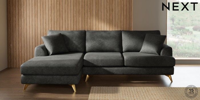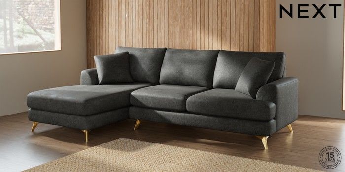 7.2.10 Parker Medium Sofa Chaise - Left Hand Plush Chenille Dark Grey High Metal - Brass | Made Click here to use our website with more accessibility support, for example screen readers
