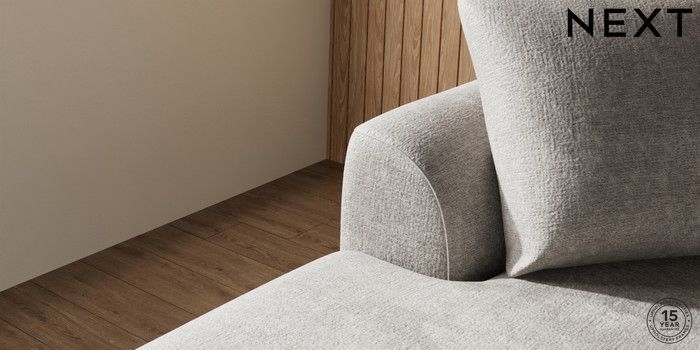 7.2.10 Parker Medium Sofa Chaise - Left Hand Plush Chenille Light Grey High Metal - Chrome | Made Click here to use our website with more accessibility support, for example screen readers