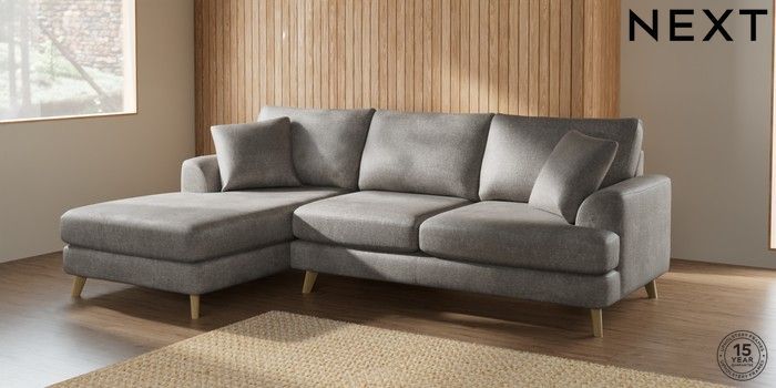7.2.10 Parker Medium Sofa Chaise - Left Hand Plush Chenille Light Grey Low Retro Tapered - Light | Made Click here to use our website with more accessibility support, for example screen readers