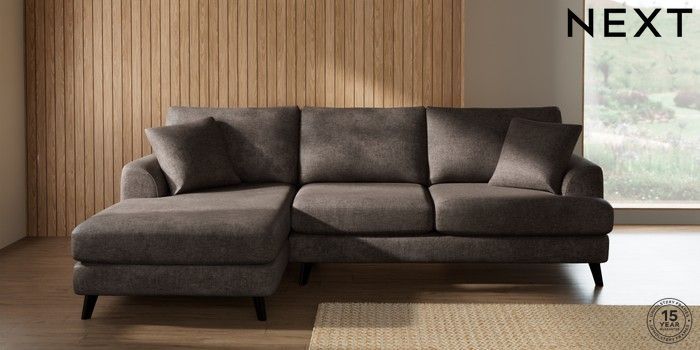 7.2.10 Parker Medium Sofa Chaise - Left Hand Plush Chenille Mink Brown Low Retro Tapered - Dark | Made Click here to use our website with more accessibility support, for example screen readers