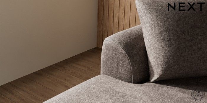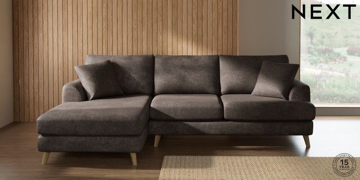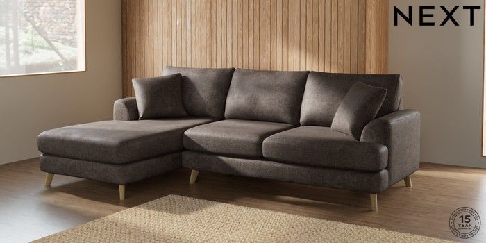 7.2.10 Parker Medium Sofa Chaise - Left Hand Plush Chenille Mink Brown Low Retro Tapered - Light | Made Click here to use our website with more accessibility support, for example screen readers