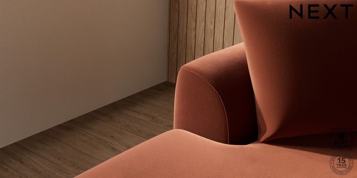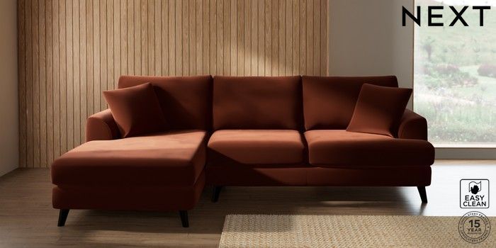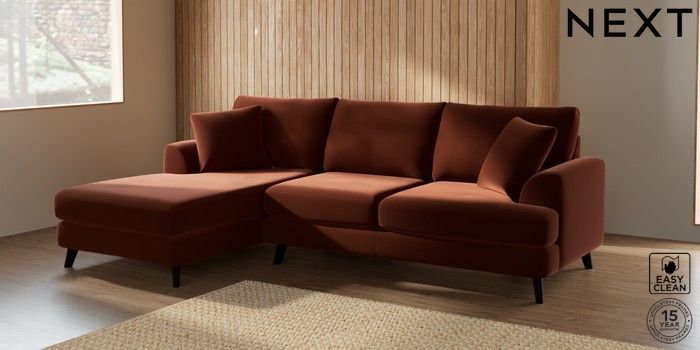 7.2.10 Parker Medium Sofa Chaise - Left Hand Plush Velvet Easy Clean Ginger Orange Low Retro Tapered - Dark | Made Click here to use our website with more accessibility support, for example screen readers