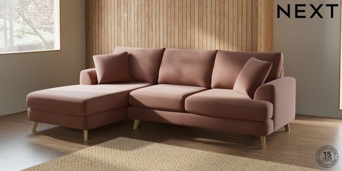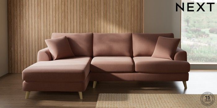 7.2.10 Parker Medium Sofa Chaise - Left Hand Relaxed Linen Look Light Rust Brown Low Retro Tapered - Light | Made Click here to use our website with more accessibility support, for example screen readers