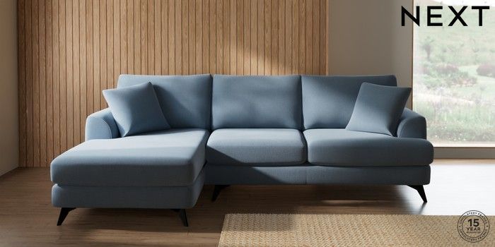 7.2.10 Parker Medium Sofa Chaise - Left Hand Relaxed Linen Look Mid Blue High Metal - Black | Made Click here to use our website with more accessibility support, for example screen readers