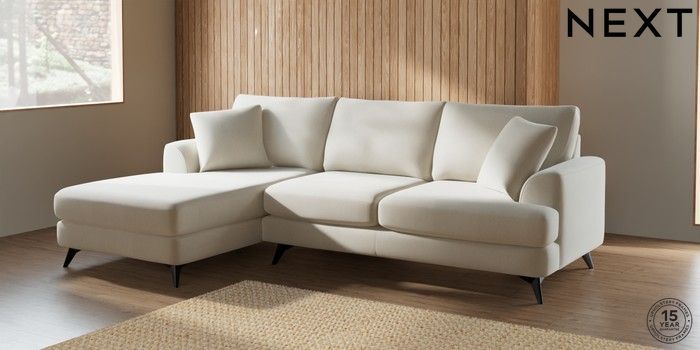 7.2.10 Parker Medium Sofa Chaise - Left Hand Relaxed Linen Look Oyster High Metal - Black | Made Click here to use our website with more accessibility support, for example screen readers