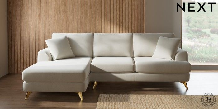 7.2.10 Parker Medium Sofa Chaise - Left Hand Relaxed Linen Look Oyster High Metal - Brass | Made Click here to use our website with more accessibility support, for example screen readers