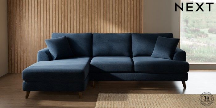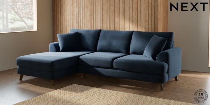 7.2.10 Parker Medium Sofa Chaise - Left Hand Ripple Chenille Dark Blue Low Retro Tapered - Mid | Made Click here to use our website with more accessibility support, for example screen readers