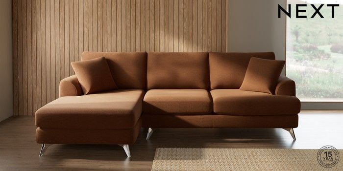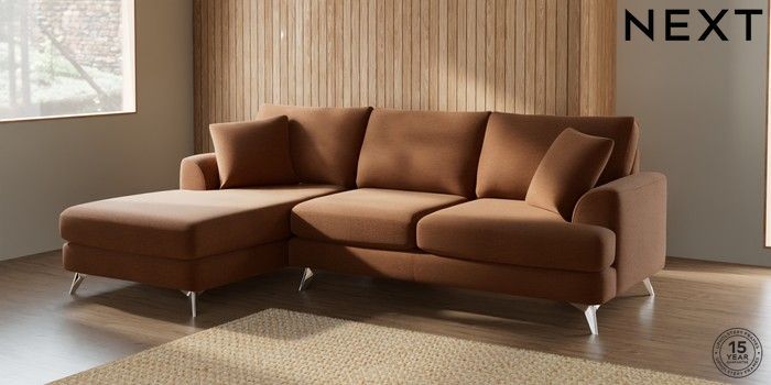 7.2.10 Parker Medium Sofa Chaise - Left Hand Ripple Chenille Mid Rust Brown High Metal - Chrome | Made Click here to use our website with more accessibility support, for example screen readers