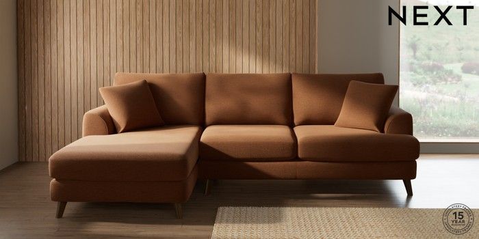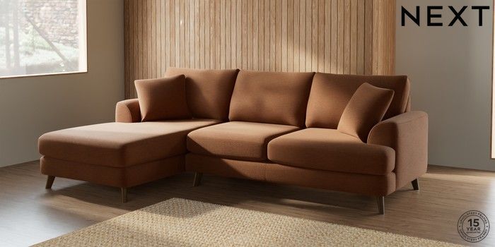 7.2.10 Parker Medium Sofa Chaise - Left Hand Ripple Chenille Mid Rust Brown Low Retro Tapered - Mid | Made Click here to use our website with more accessibility support, for example screen readers