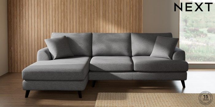 7.2.10 Parker Medium Sofa Chaise - Left Hand Studio Chenille Mid Grey Low Retro Tapered - Dark | Made Click here to use our website with more accessibility support, for example screen readers