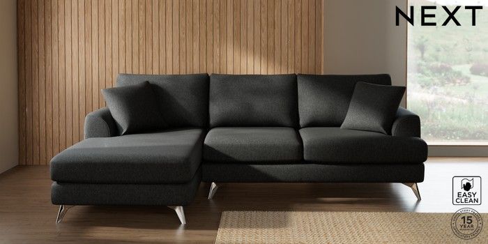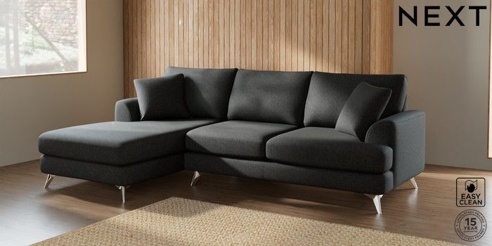 7.2.10 Parker Medium Sofa Chaise - Left Hand Tweedy Blend Easy Clean Charcoal Grey High Metal - Chrome | Made Click here to use our website with more accessibility support, for example screen readers