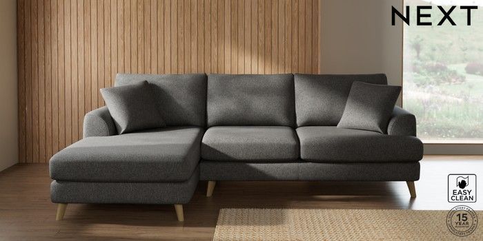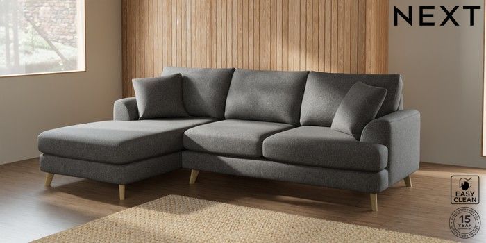 7.2.10 Parker Medium Sofa Chaise - Left Hand Tweedy Blend Easy Clean Dark Grey Low Retro Tapered - Light | Made Click here to use our website with more accessibility support, for example screen readers