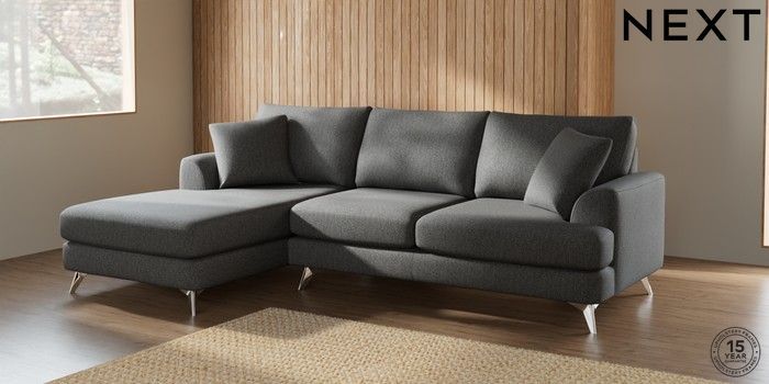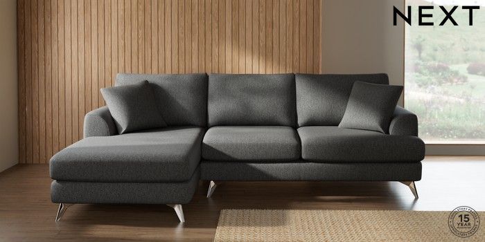 7.2.10 Parker Medium Sofa Chaise - Left Hand Tweedy Chenille Dark Grey High Metal - Chrome | Made Click here to use our website with more accessibility support, for example screen readers