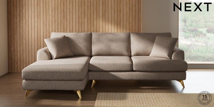 7.2.10 Parker Medium Sofa Chaise - Left Hand Tweedy Chenille Mid Natural High Metal - Brass | Made Click here to use our website with more accessibility support, for example screen readers