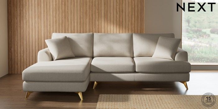 7.2.10 Parker Medium Sofa Chaise - Left Hand Tweedy Chenille Oyster High Metal - Brass | Made Click here to use our website with more accessibility support, for example screen readers