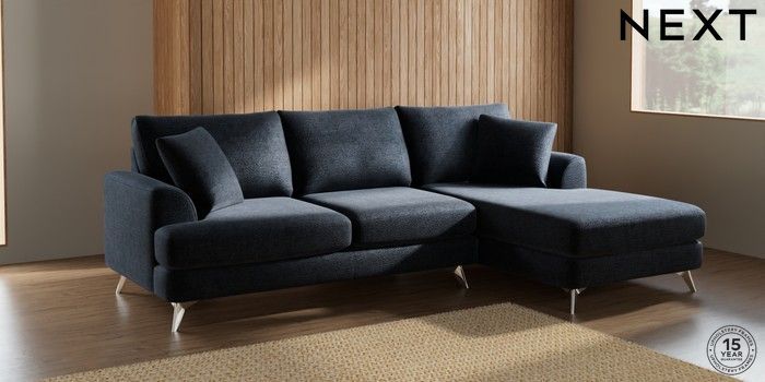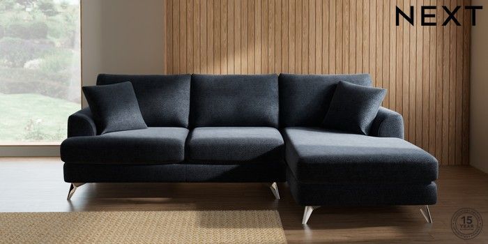 7.2.10 Parker Medium Sofa Chaise - Right Hand Boucle Chenille Dark Slate Blue High Metal - Chrome | Made Click here to use our website with more accessibility support, for example screen readers