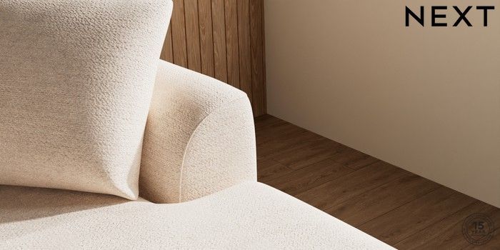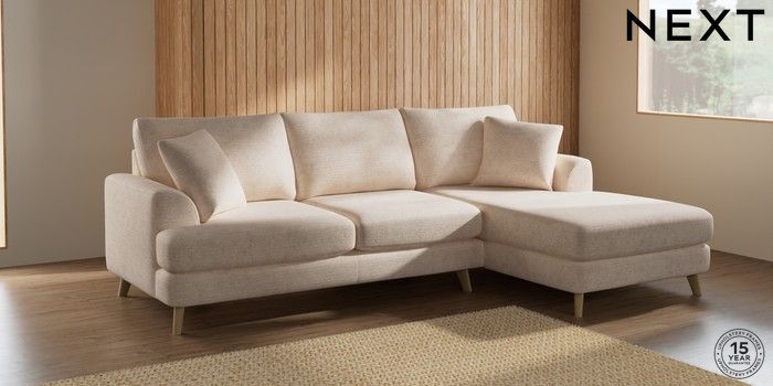 7.2.10 Parker Medium Sofa Chaise - Right Hand Boucle Chenille Oyster Low Retro Tapered - Light | Made Click here to use our website with more accessibility support, for example screen readers