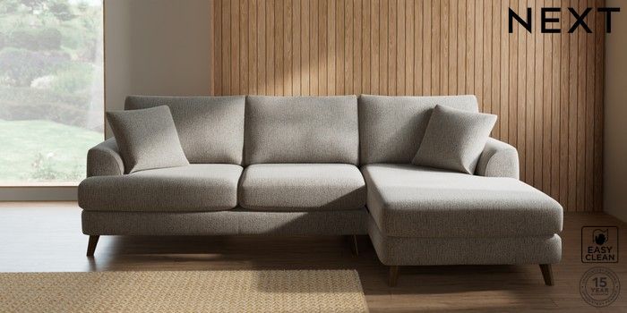 7.2.10 Parker Medium Sofa Chaise - Right Hand Chunky Boucle Easy Clean Dove Low Retro Tapered - Mid | Made Click here to use our website with more accessibility support, for example screen readers