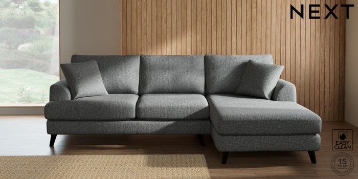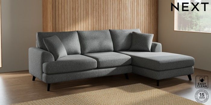 7.2.10 Parker Medium Sofa Chaise - Right Hand Chunky Boucle Easy Clean Mid Grey Low Retro Tapered - Dark | Made Click here to use our website with more accessibility support, for example screen readers