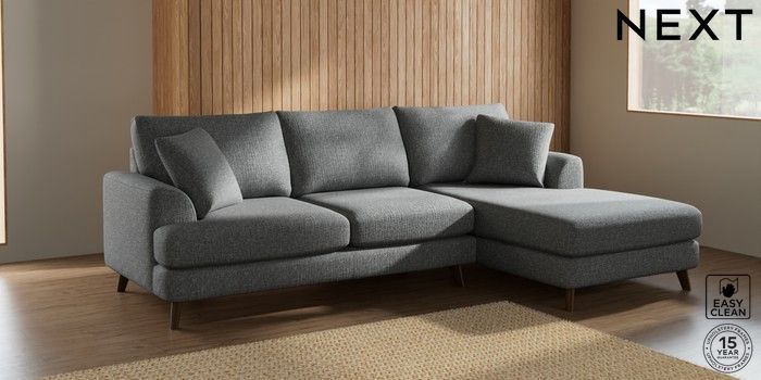 7.2.10 Parker Medium Sofa Chaise - Right Hand Chunky Boucle Easy Clean Mid Grey Low Retro Tapered - Mid | Made Click here to use our website with more accessibility support, for example screen readers