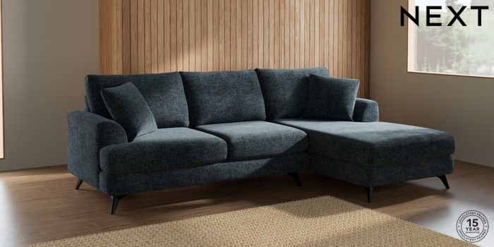 7.2.10 Parker Medium Sofa Chaise - Right Hand Chunky Chenille Dark Navy Blue High Metal - Black | Made Click here to use our website with more accessibility support, for example screen readers
