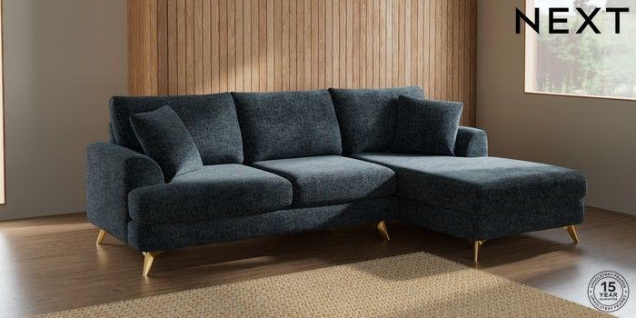 7.2.10 Parker Medium Sofa Chaise - Right Hand Chunky Chenille Dark Navy Blue High Metal - Brass | Made Click here to use our website with more accessibility support, for example screen readers