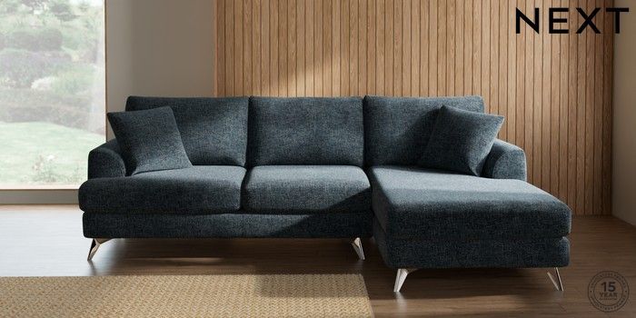 7.2.10 Parker Medium Sofa Chaise - Right Hand Chunky Chenille Dark Navy Blue High Metal - Chrome | Made Click here to use our website with more accessibility support, for example screen readers