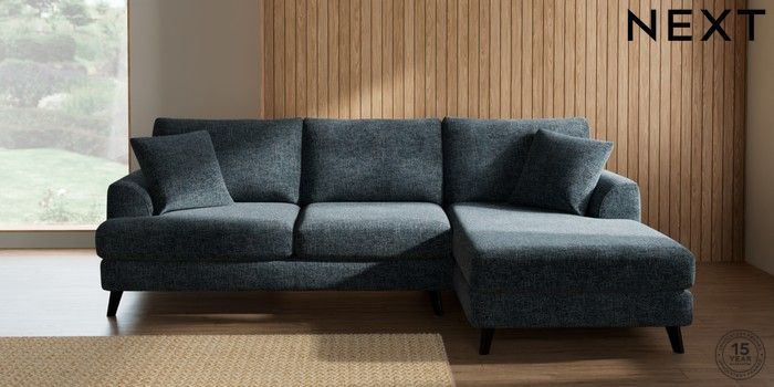 7.2.10 Parker Medium Sofa Chaise - Right Hand Chunky Chenille Dark Navy Blue Low Retro Tapered - Dark | Made Click here to use our website with more accessibility support, for example screen readers