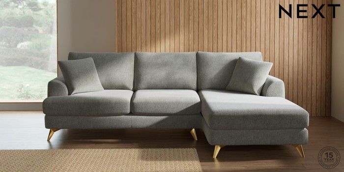 7.2.10 Parker Medium Sofa Chaise - Right Hand Chunky Chenille Light Grey High Metal - Brass | Made Click here to use our website with more accessibility support, for example screen readers