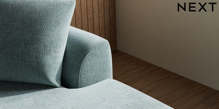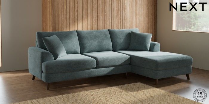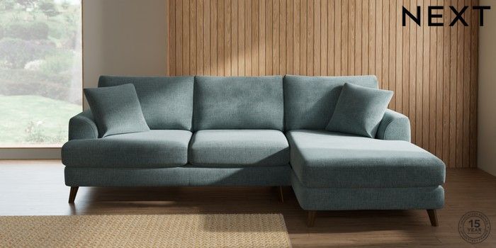 7.2.10 Parker Medium Sofa Chaise - Right Hand Chunky Chenille Light Teal Green Low Retro Tapered - Mid | Made Click here to use our website with more accessibility support, for example screen readers