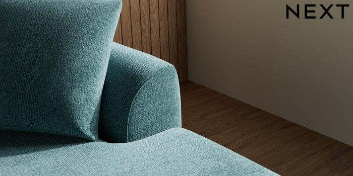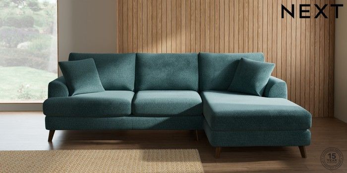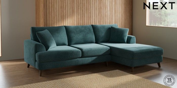 7.2.10 Parker Medium Sofa Chaise - Right Hand Chunky Chenille Mid Teal Green Low Retro Tapered - Mid | Made Click here to use our website with more accessibility support, for example screen readers