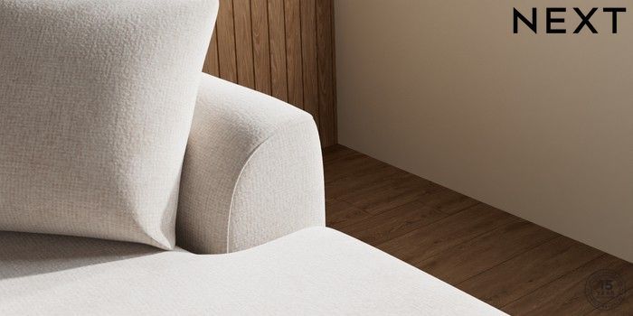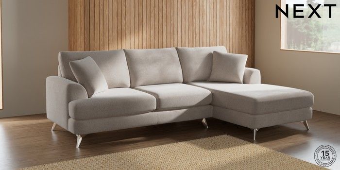 7.2.10 Parker Medium Sofa Chaise - Right Hand Chunky Chenille Oyster High Metal - Chrome | Made Click here to use our website with more accessibility support, for example screen readers