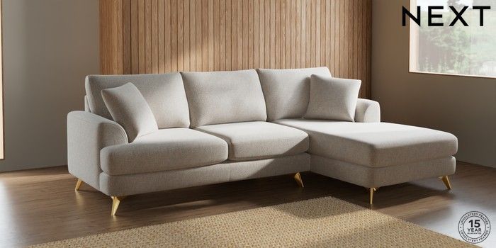 7.2.10 Parker Medium Sofa Chaise - Right Hand Chunky Marl Oyster High Metal - Brass | Made Click here to use our website with more accessibility support, for example screen readers